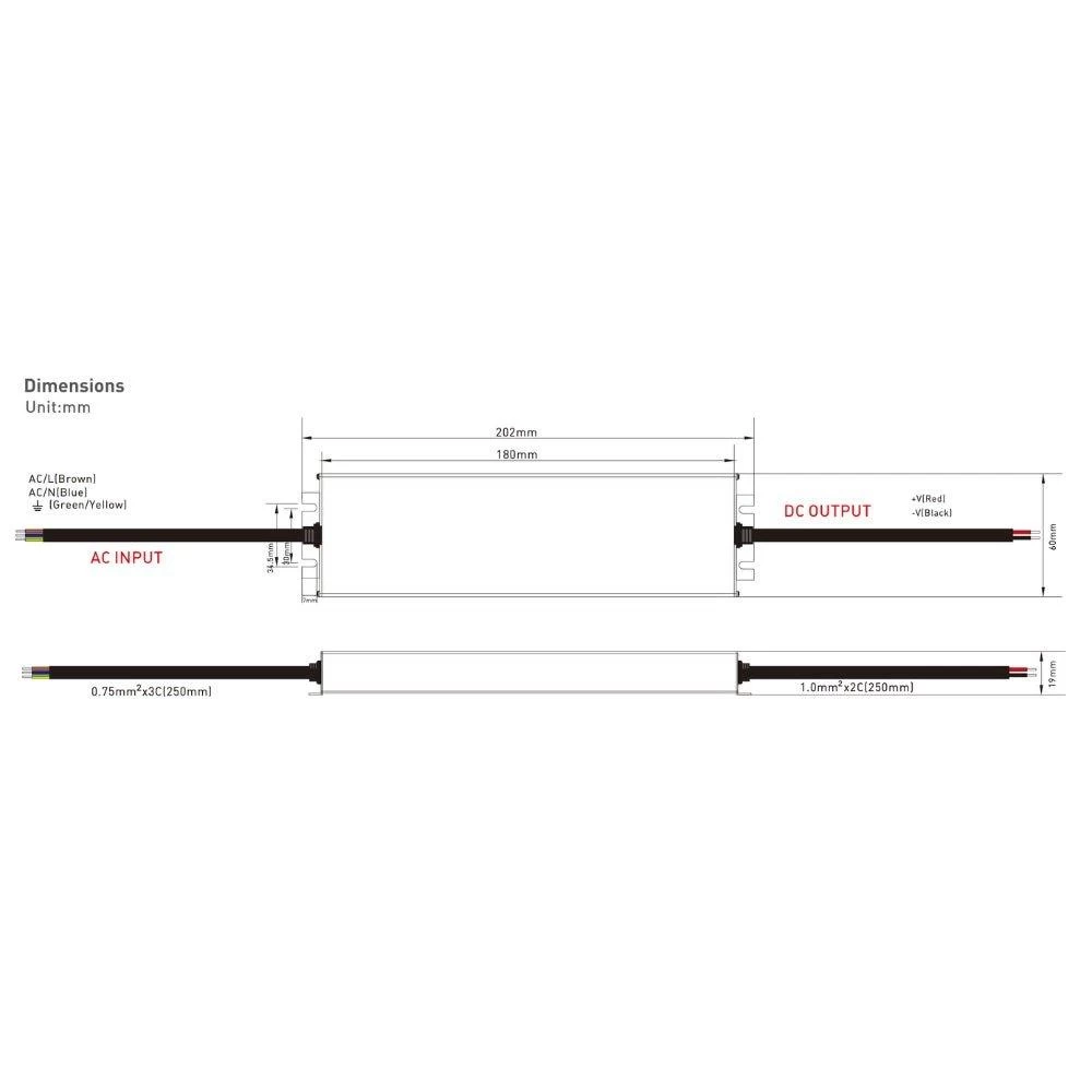 150W – 202x60x19mm(LxWxH)Â