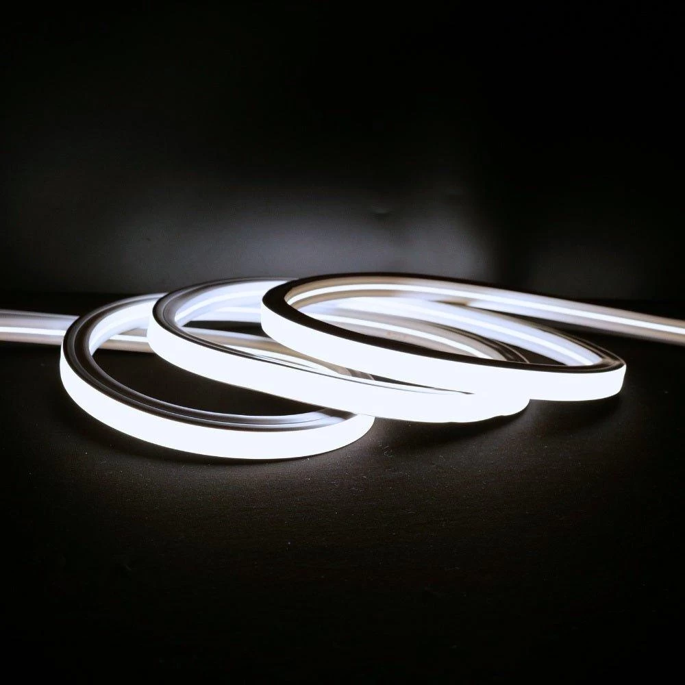 Cool White 6000K Neon Flex 16x16mm 220V 240V 120 LEDs/m is perfect for creating an infinite amount of environments its silicone cover offers dotless light and performs better than the standard Strip lights with visible individual LED Chips. Because it’s so flexible, its installation is simple and requires clips to installed anywhere and to adapt it to all sorts of shapes in horizontal bending (5cm bending raidus). The Waterproof feature of the Light makes it ideal for Indoor and Outdoor* (Splashproof) use.