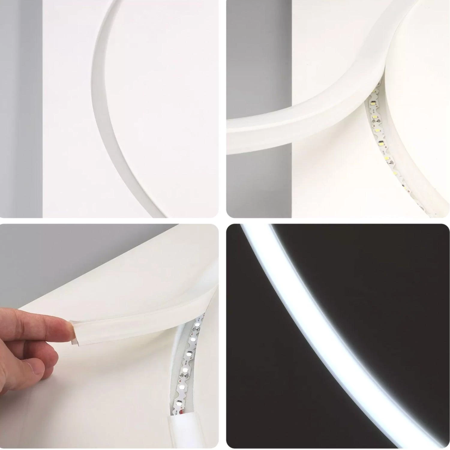 The silicone profiles are flexible and when the LED Strip is installed, a Neon light effect is achieved. They are made for lighting modern environments with a clean and elegant indirect light. Thanks to the opaque cover a diffused lighting effect is created which is pleasing to the eye.