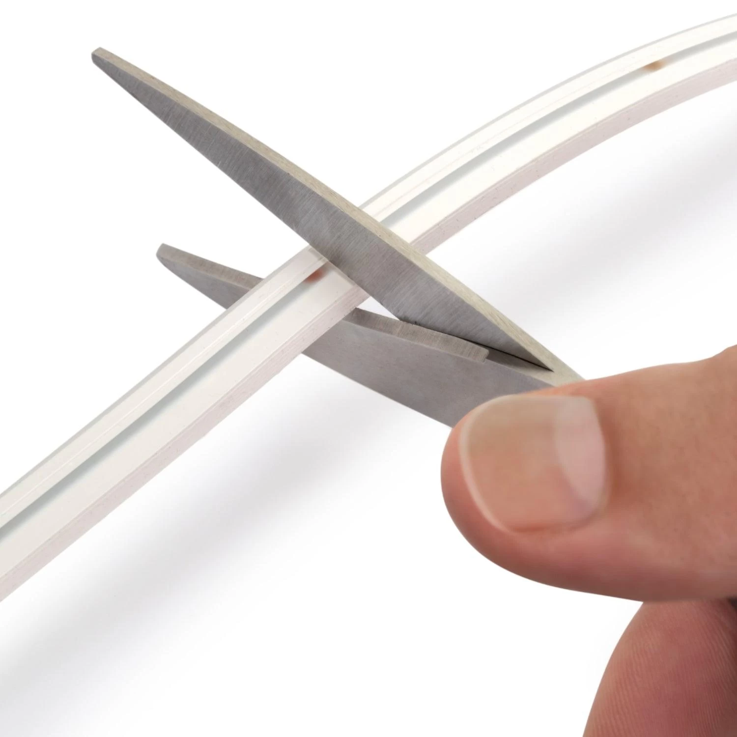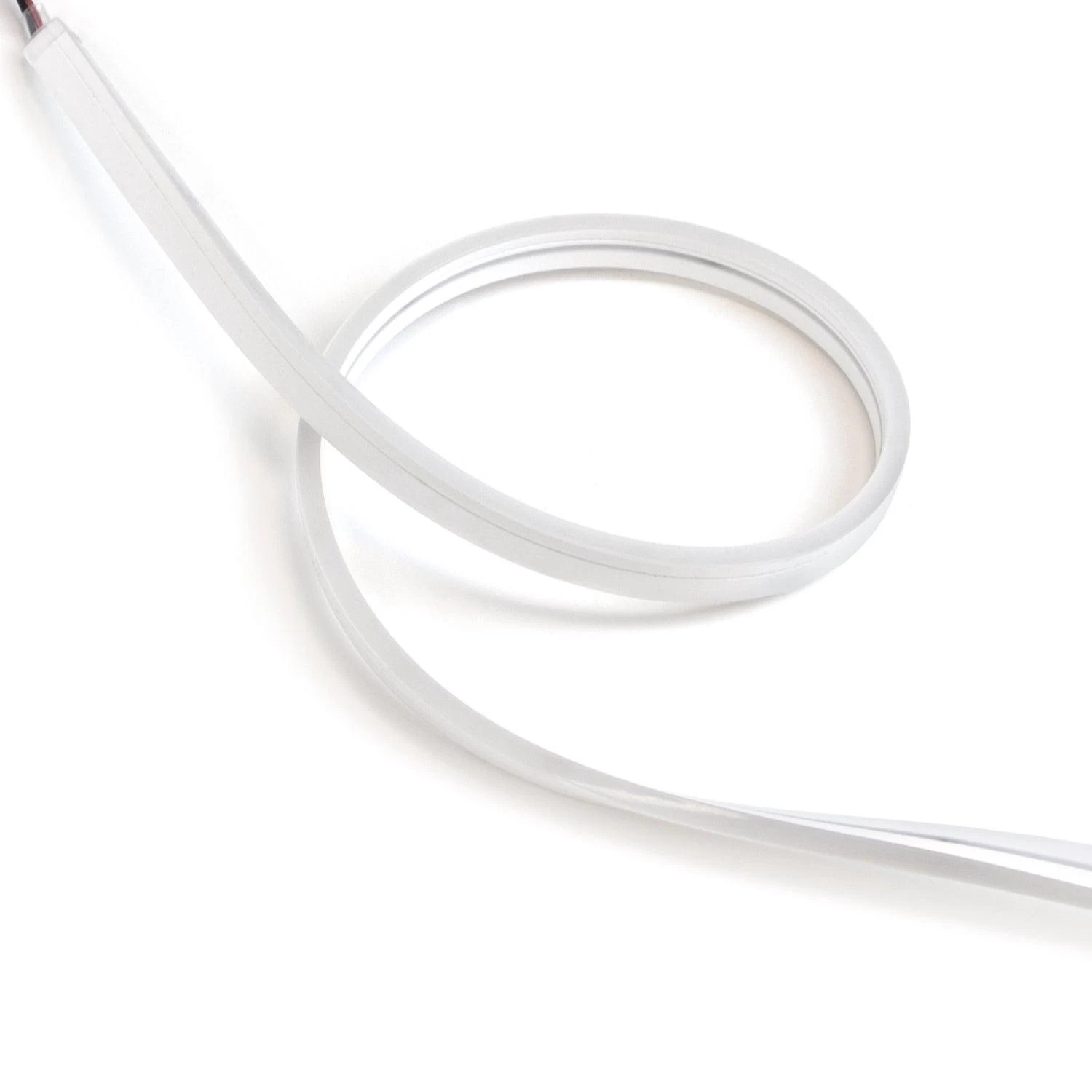 Neon Flex is a durable fully diffused linear light perfect for furniture installations thanks to it’s ultra slimline micro profile. This neon can be cut easily to your desired lengths at the allocated cut points. Maximum length at any time is 5 metres before visible voltage drops occur. You can get 10m continuous length, however, you need to power the led neon flex from both ends.