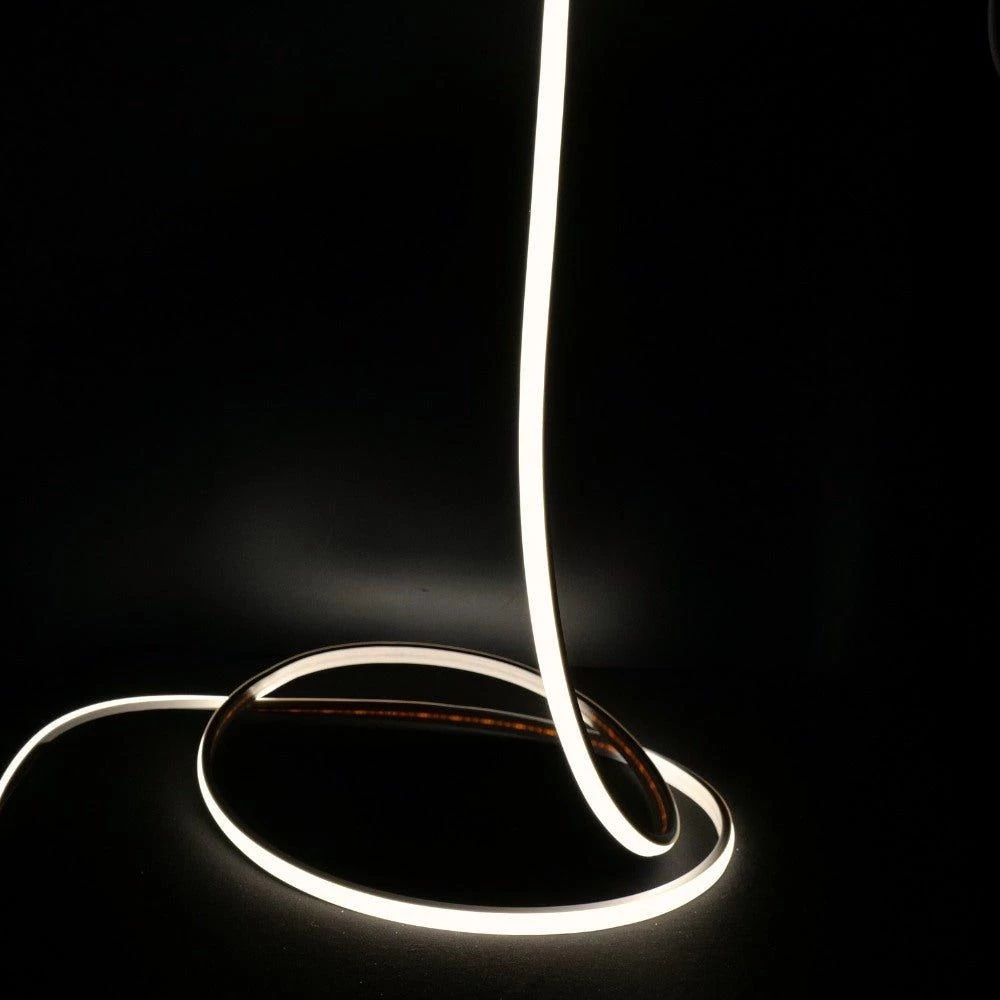 This COB (Chip on board) LED strip is a flexible LED strip with no dotting. This is especially useful if the LED strip is going to be visible or is diffused by a clear cover. LED Strip lighting is easily installed into panels or trays just by bending/folding the strip without the need for connections or soldering.