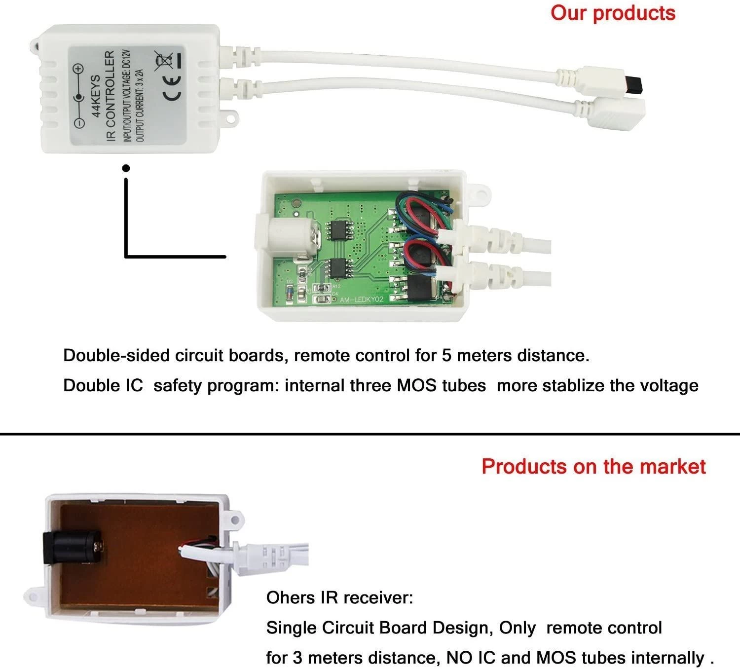 - Good & Full Material: Using double layer copper on PCB board to keep the mixed colours more even. Led IR remote controller has overcharging, short circuit protection and memory function. Power Supply makes sure the safety for adults and kids.