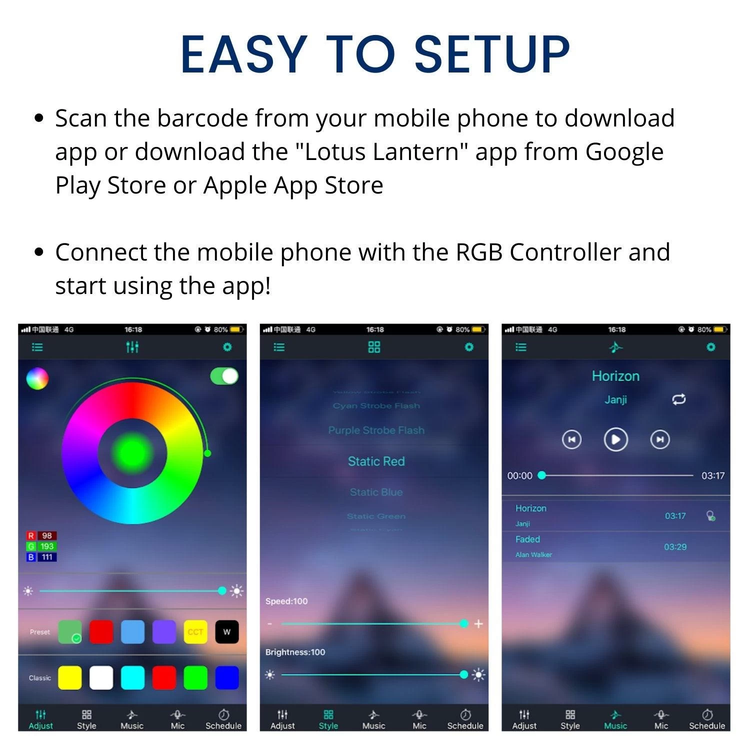 RGB Bluetooth controller is a new intelligent led controller. The light mode can be controlled by a smartphone APP (Lotus Lantern), or the static colour and dynamic model of the light can be controlled by the infrared 24 key remote control, adjust the brightness of the light strip, Bluetooth RGB controller is widely used in hotel bars etc. You can control multiple Bluetooth controllers at the same time from the app.