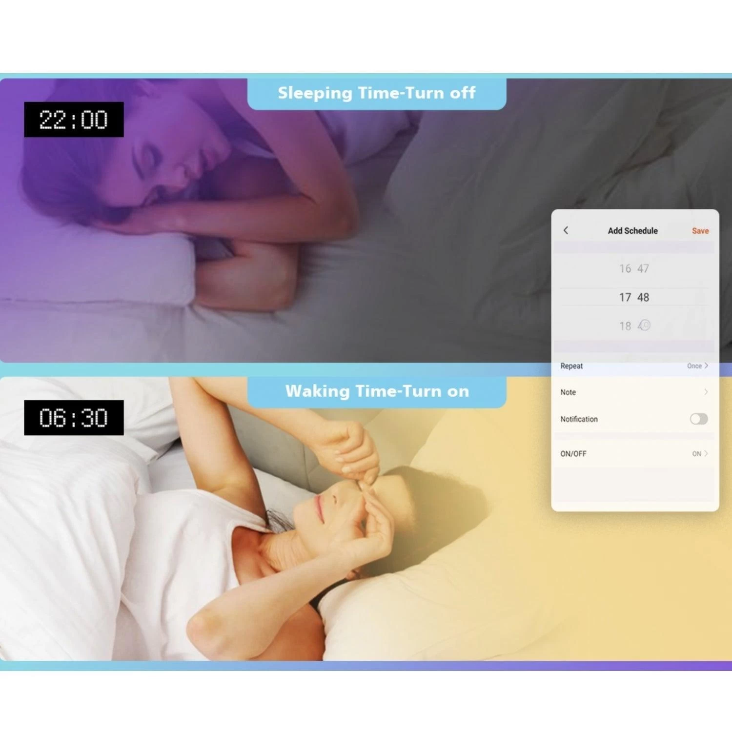 - Tuya APP cloud control, support on/off, RGB color, color temperature and brightness adjust, delay turn on/off light, timer run, scene edit and music play function.Â