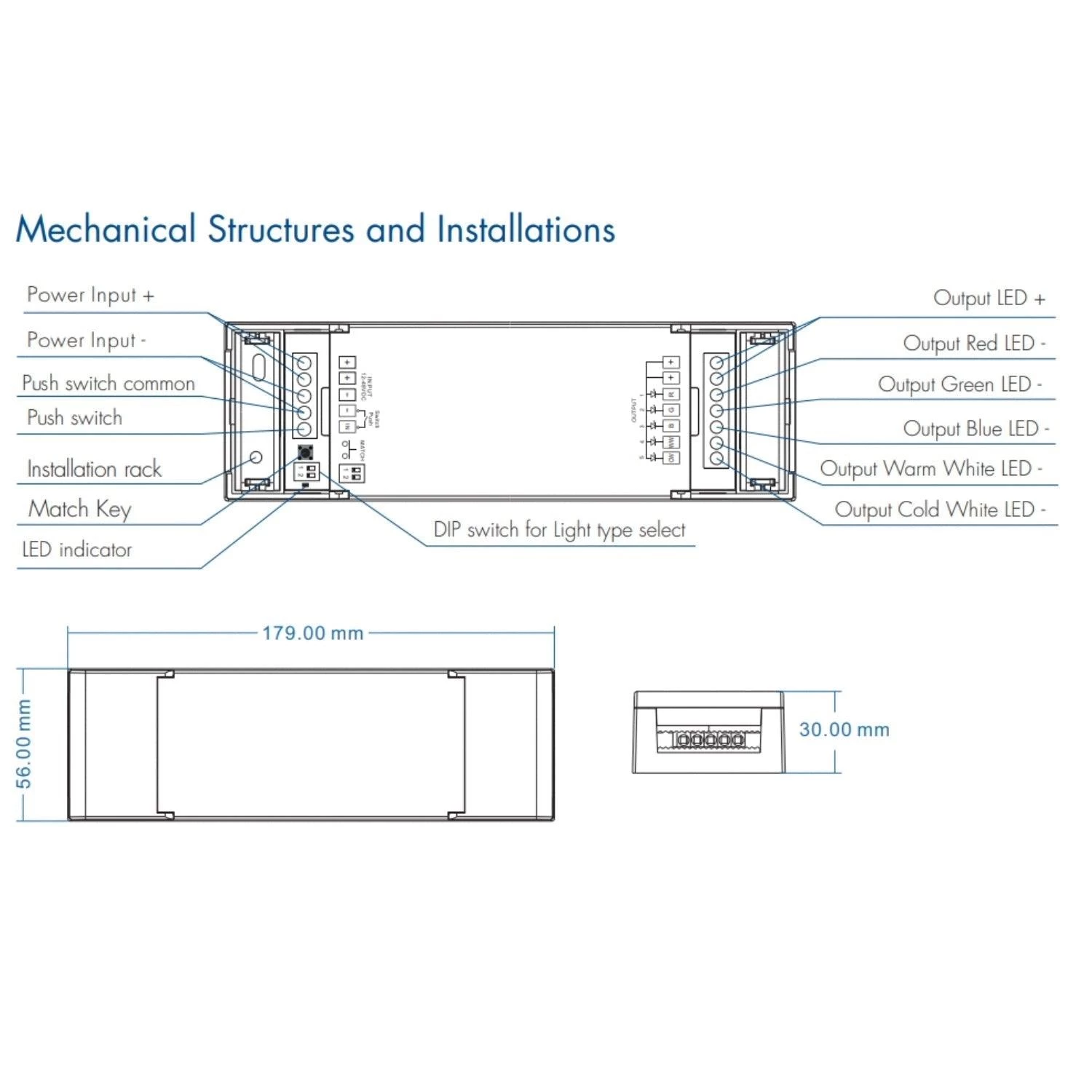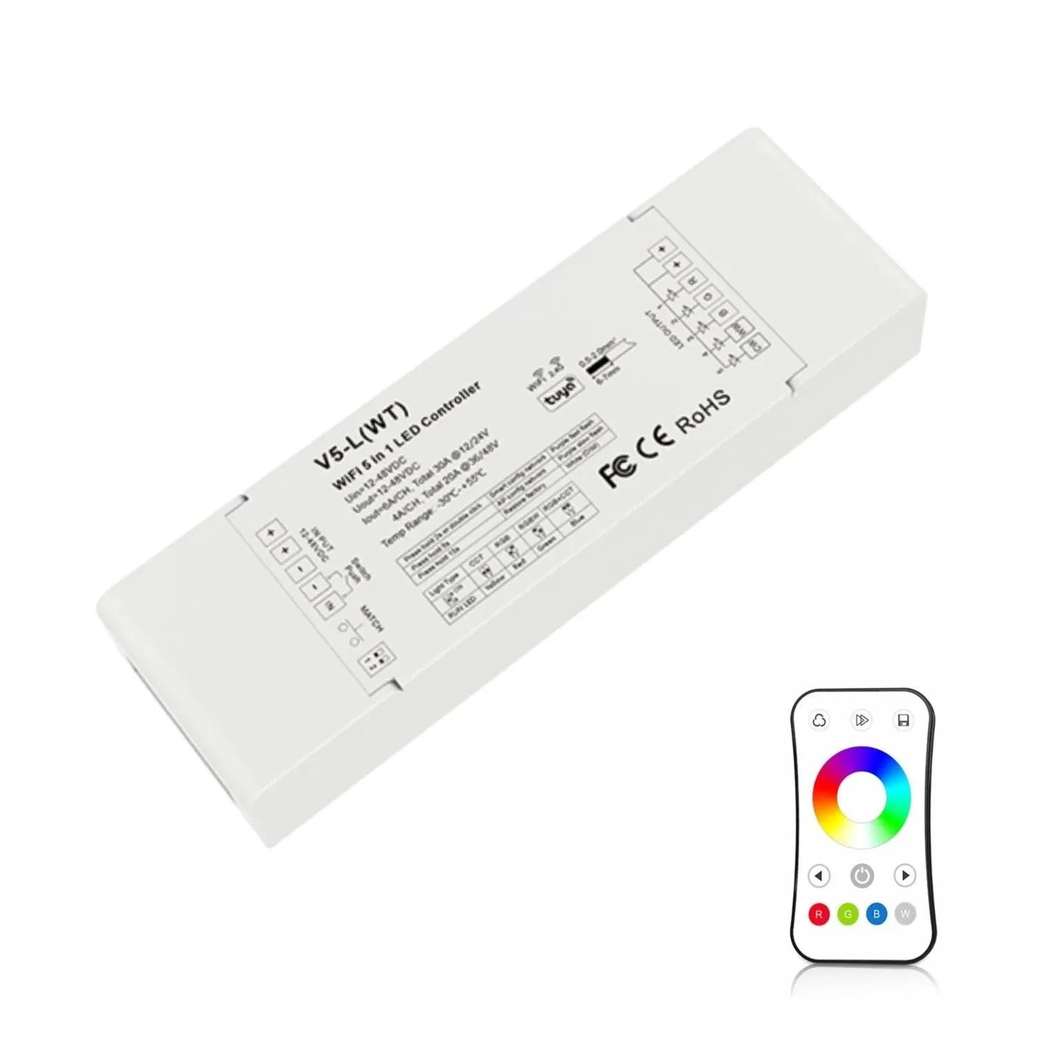 - 5 in 1 function, used for control RGB, RGBW, RGB+CCT, color temperature or single color LED strip.Â